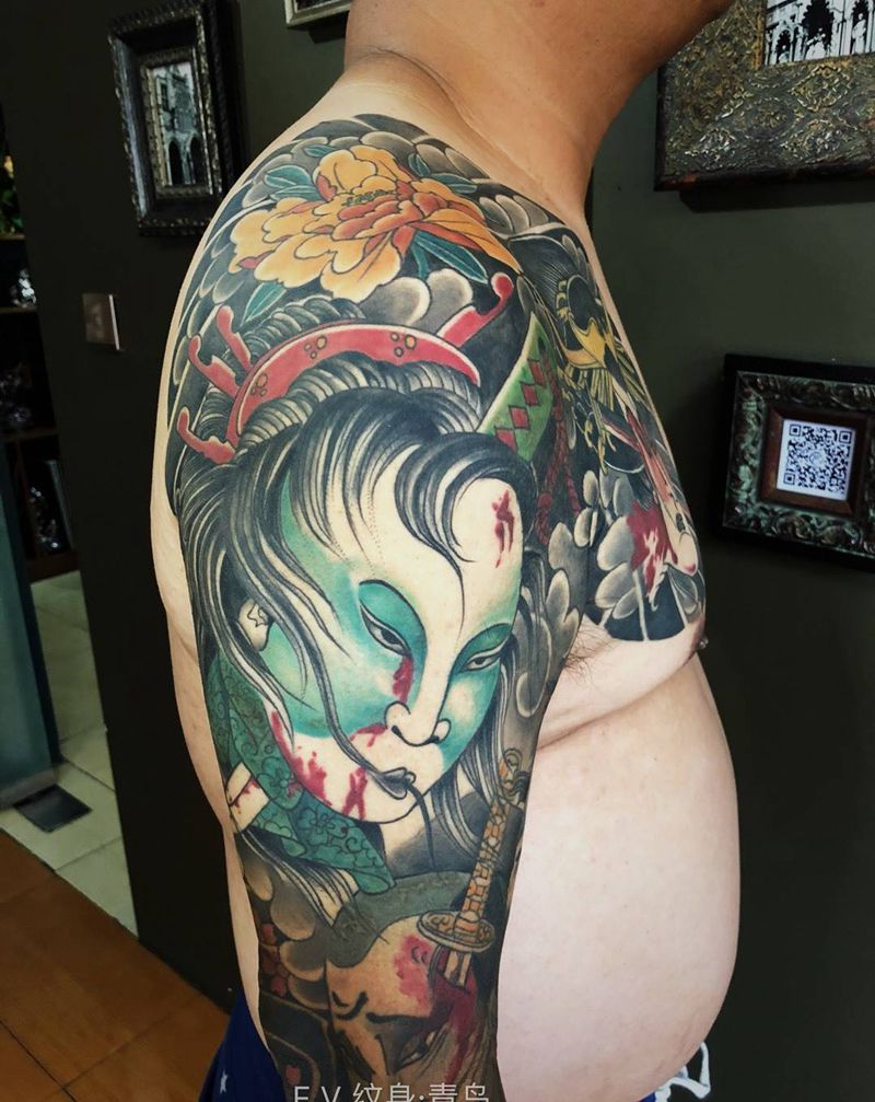 当前位置: 首页 >山东省青岛市纹身店-FV 纹身 艺术区纹身图案>生首主题花臂纹身图片
