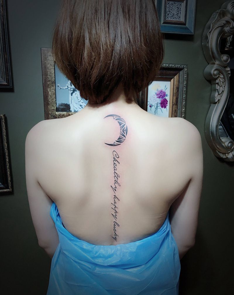 背部英文字母月亮小清新纹身图片_背部花体字纹身图案