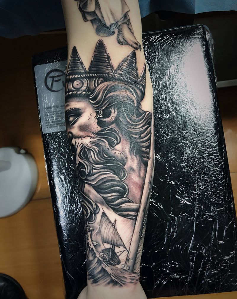 海神,波塞冬纹身图片_手臂纹身图案