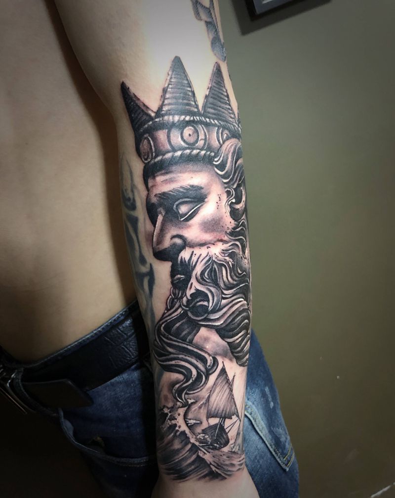海神,波塞冬纹身图片_手臂纹身图案