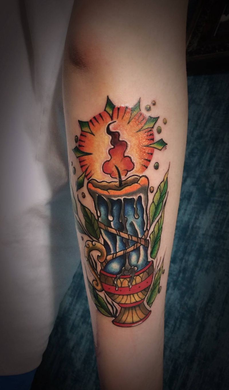 当前位置: 首页 >山东省青岛市纹身店-FV 纹身 艺术区纹身图案>蜡烛精神纹身图片_手臂New School纹身图案
