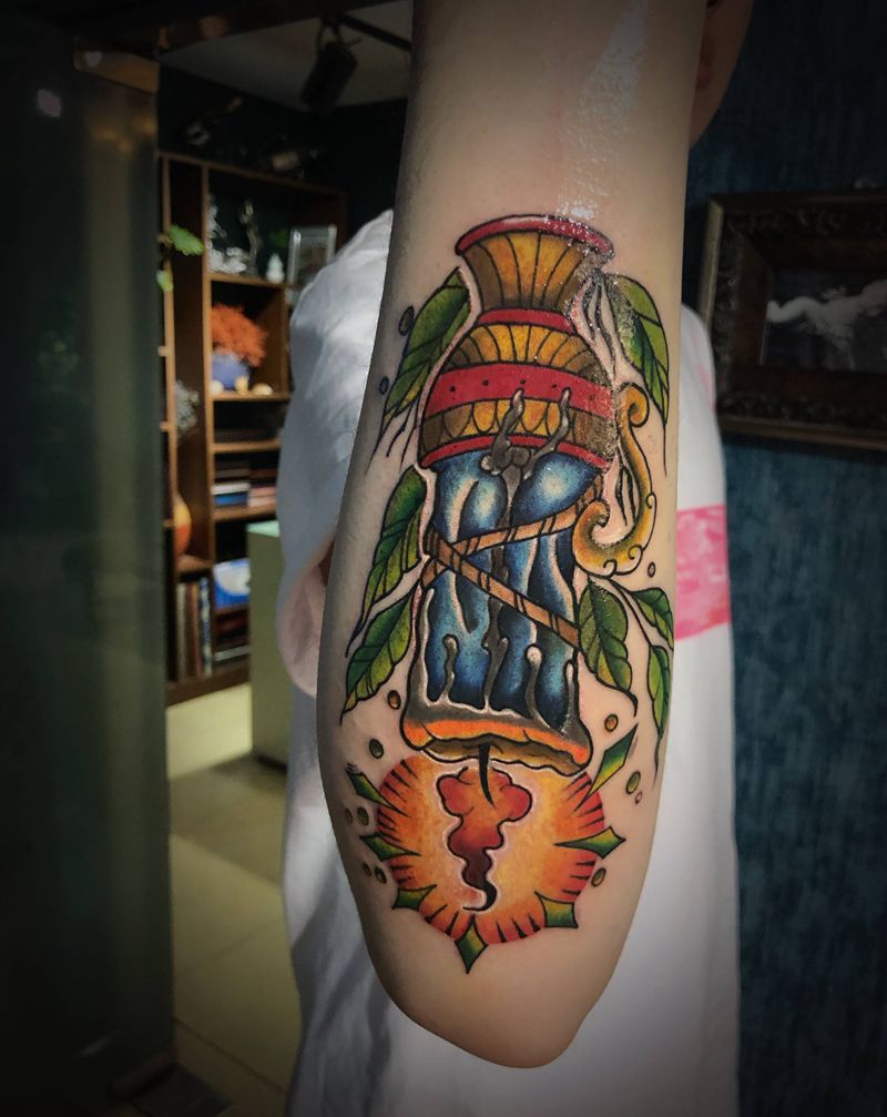 当前位置: 首页 >山东省青岛市纹身店-FV 纹身 艺术区纹身图案>蜡烛精神纹身图片_手臂New School纹身图案
