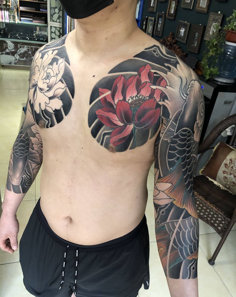 • 女性大花胸纹身_43张霸气漂亮的女性大花胸纹身图案作品