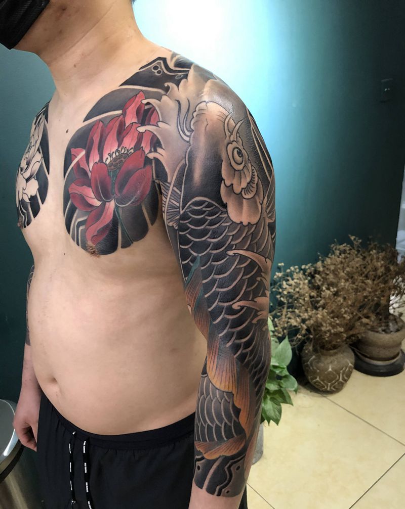 • 女性大花胸纹身_43张霸气漂亮的女性大花胸纹身图案作品