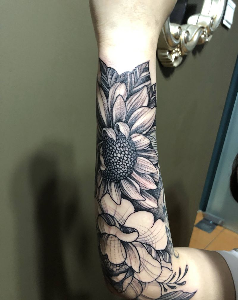 向日葵啊纹身图片_手臂纹身图案
