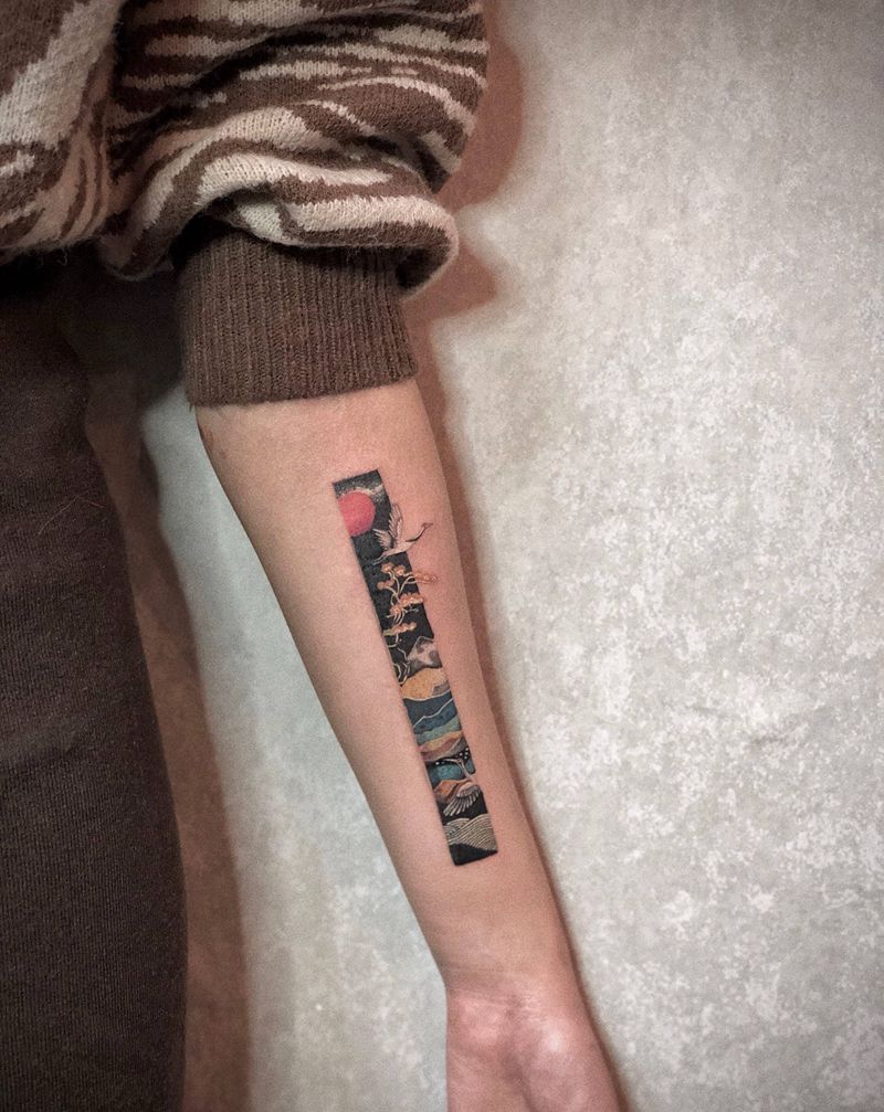 当前位置: 首页 >山东省青岛市纹身店-山石刺青纹身图案>国风精雕遮盖纹身图片_手臂水彩水墨鹤精雕纹身图案