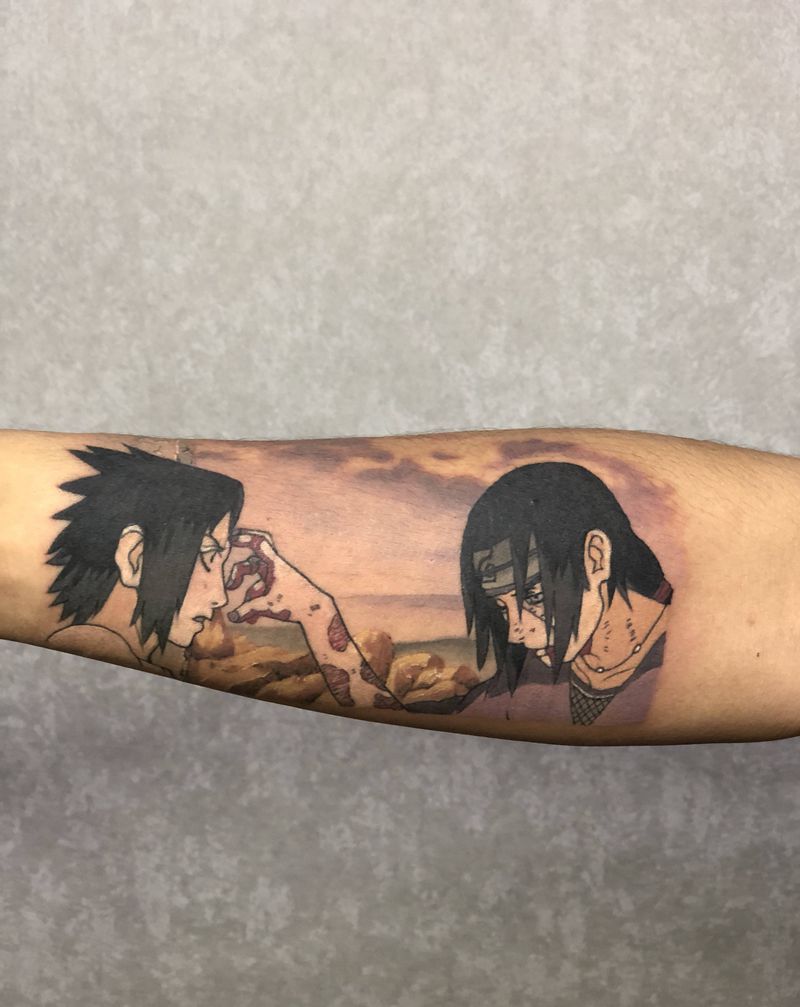 当前位置: 首页 >山东省青岛市纹身店-山石刺青纹身图案>佐助与鼬纹身图片_手臂欧美写实水彩人物纹身图案