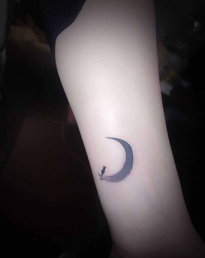 当前位置: 首页 >山东省淄博市纹身店-韵刺青纹身工作室纹身图案>月上猫纹身图片_手臂纹身图案