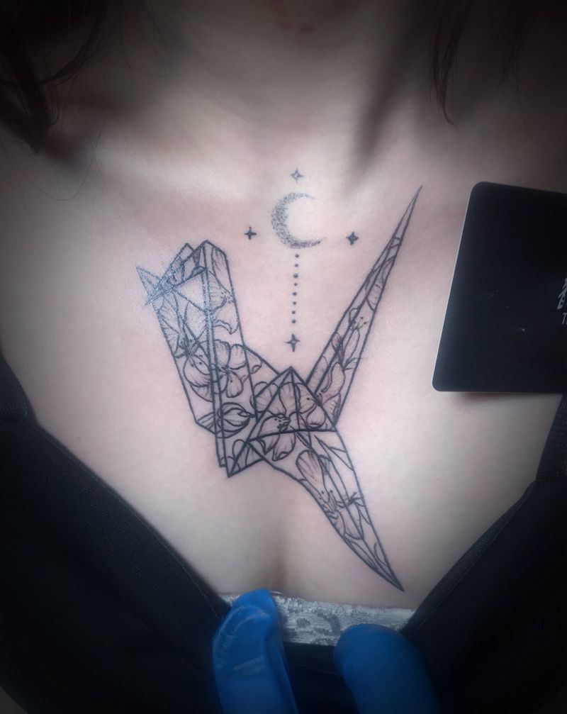 当前位置: 首页 >山东省淄博市纹身店-韵刺青纹身工作室纹身图案>素花千纸鹤纹身图片_胸部纹身图案