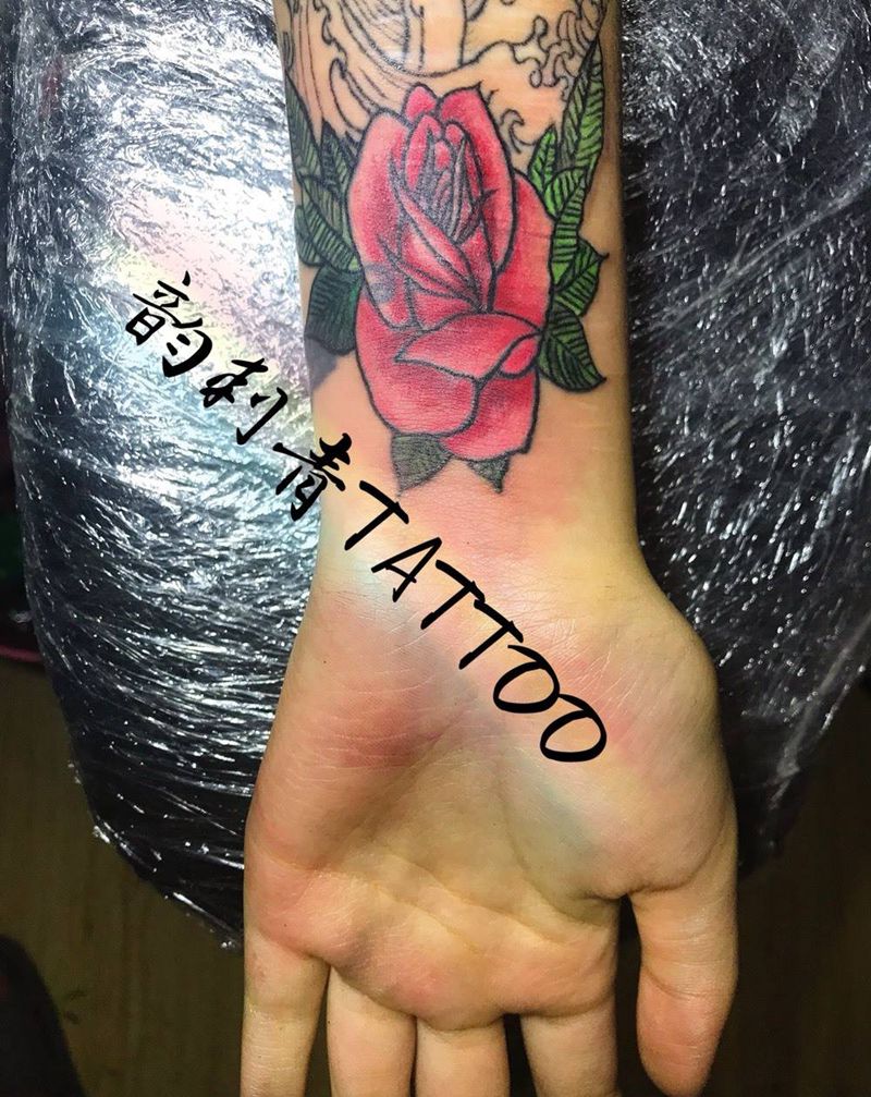 • 手背潮流时尚的玫瑰花眼睛纹身图案