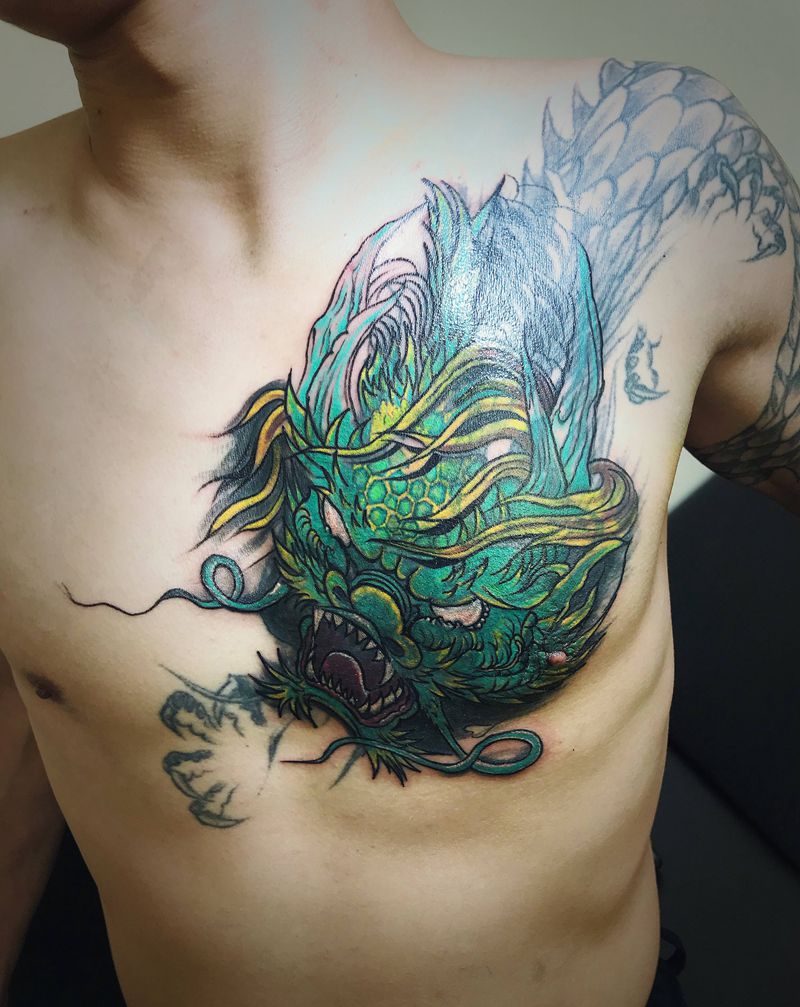 当前位置: 首页 >山东省淄博市纹身店-韵刺青纹身工作室纹身图案>烈焰龙暴力遮盖纹身图片_肩部胸部纹身图案