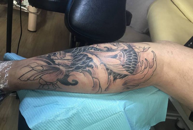 当前位置: 首页 >山东省淄博市纹身店-韵刺青纹身工作室纹身图案>包小腿锦鲤纹身图片