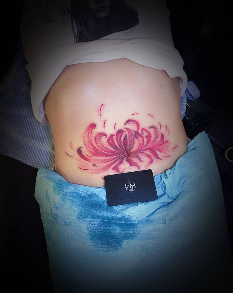 当前位置: 首页 >山东省淄博市纹身店-韵刺青纹身工作室纹身图案>彼岸花遮盖疤,妊娠纹纹身图片_腹部纹身图案