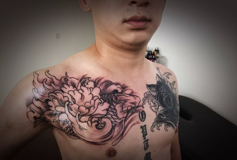 当前位置: 首页 >山东省淄博市纹身店-韵刺青纹身工作室纹身图案>鲤鱼灰底完成下次做彩纹身图片_胸部纹身图案