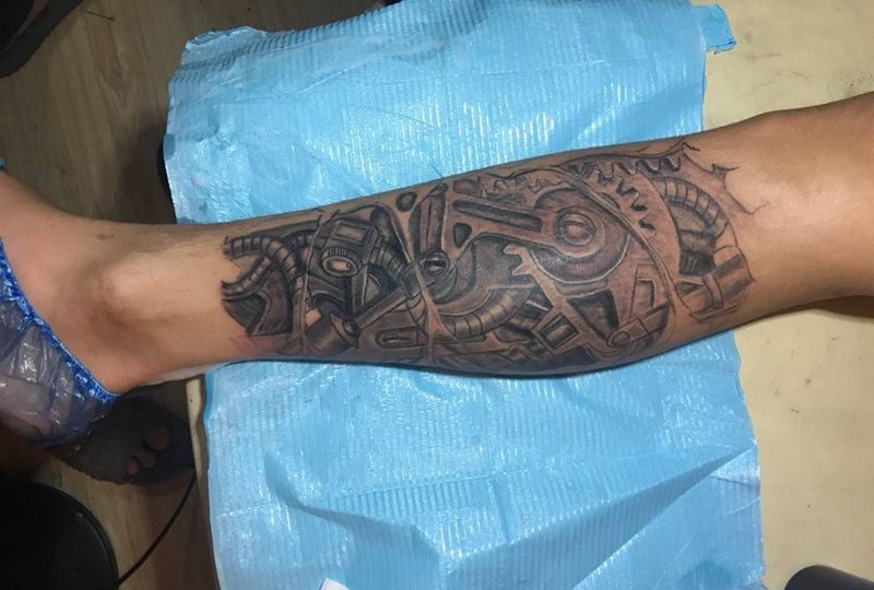 当前位置: 首页 >山东省淄博市纹身店-韵刺青纹身工作室纹身图案>机械腿纹身图片