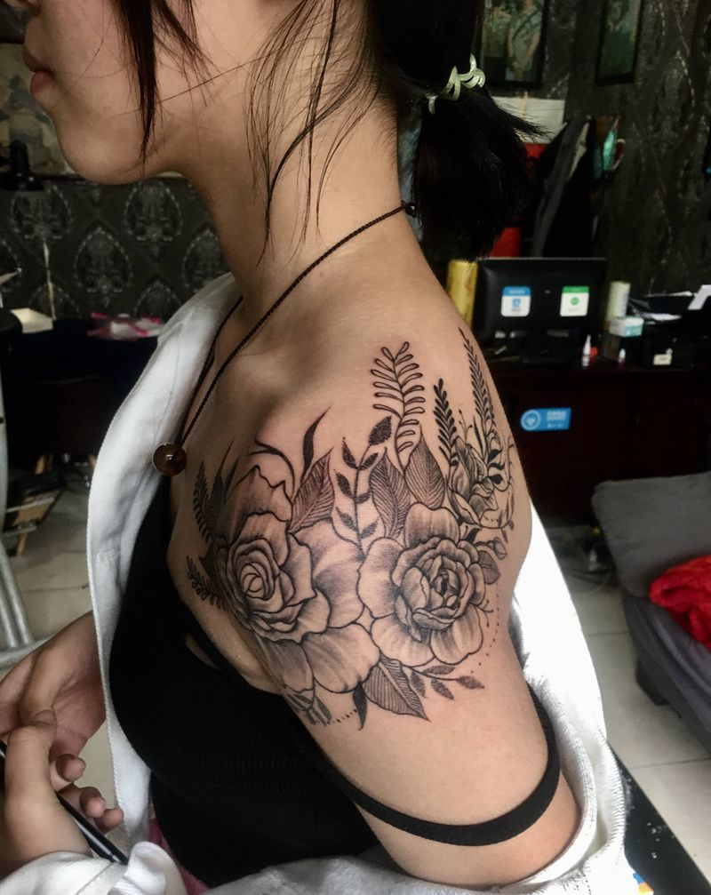 • 女性大花胸纹身_43张霸气漂亮的女性大花胸纹身图案作品