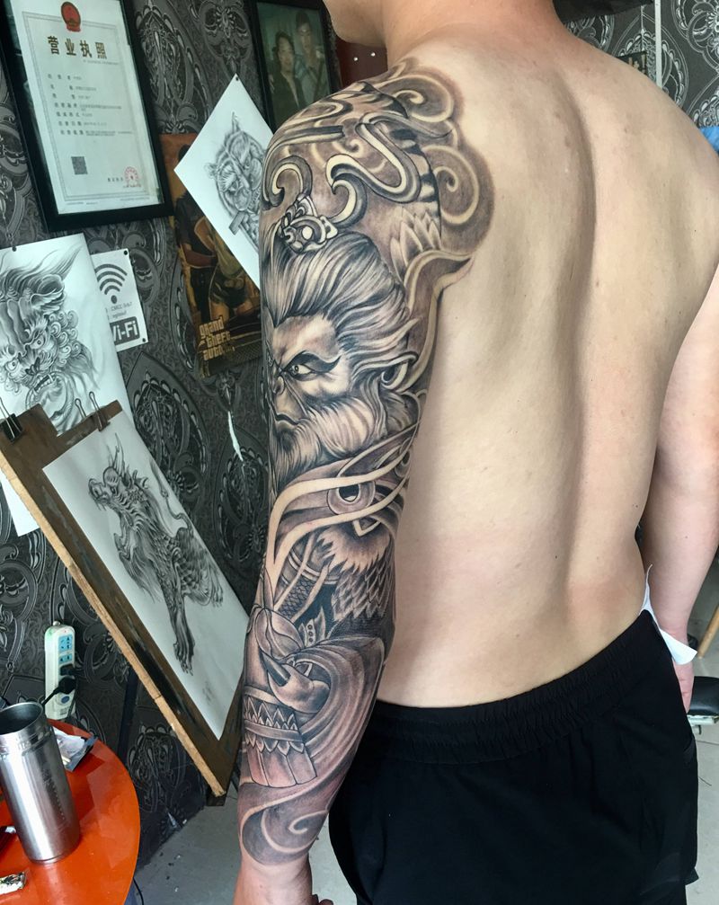当前位置: 首页 >山东省青岛市纹身店-大星纹身纹身图案>齐天大圣纹身图片_手臂新传统纹身图案