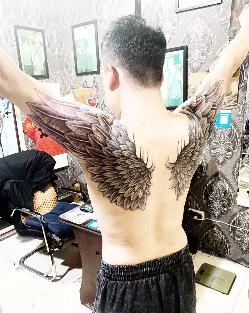 当前位置: 首页 >山东省青岛市纹身店-大星纹身纹身图案>翅膀纹身图片_背部老传统新传统纹身图案