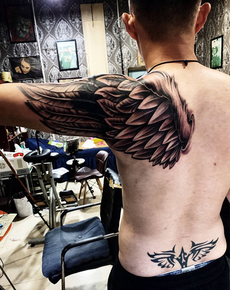 当前位置: 首页 >山东省青岛市纹身店-大星纹身纹身图案>翅膀纹身图片_肩部背部新传统纹身图案