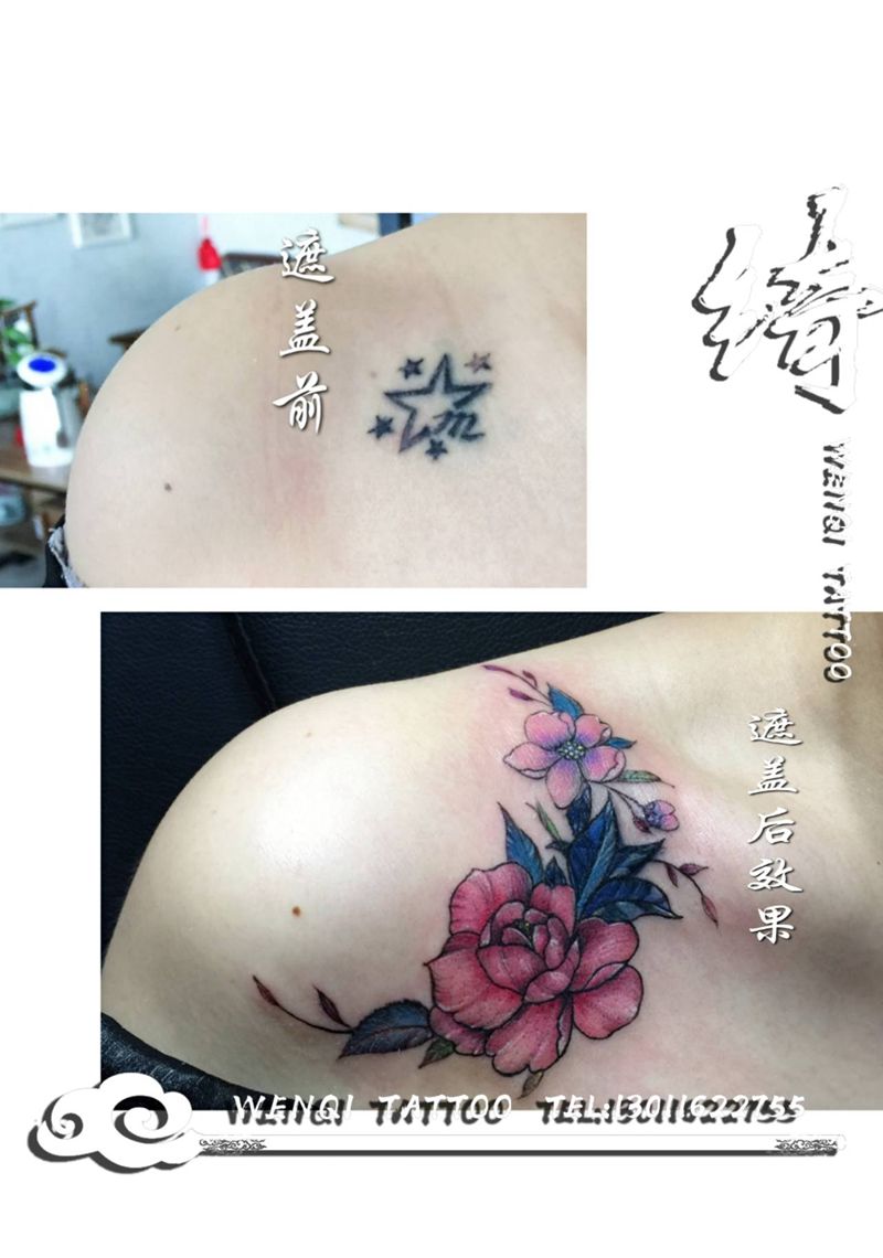 遮盖纹身图片_肩部水彩小清新遮盖纹身图案