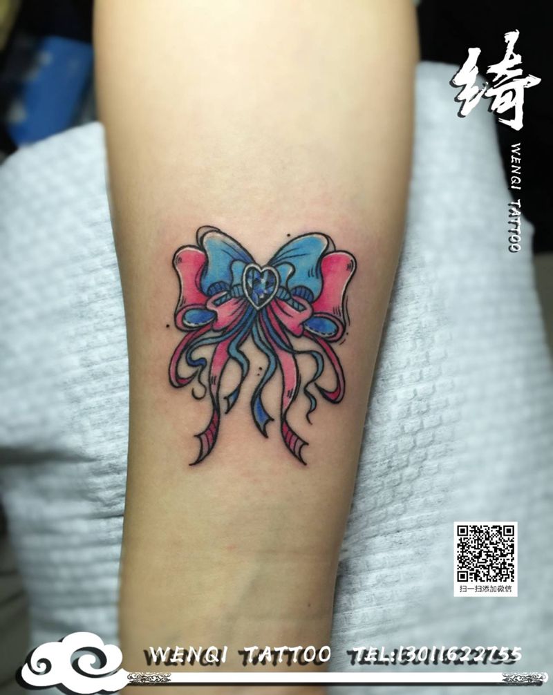 当前位置: 首页 >山东省淄博市纹身店-纹绮刺青工作室纹身图案>蝴蝶结纹身图片_手臂New School纹身图案