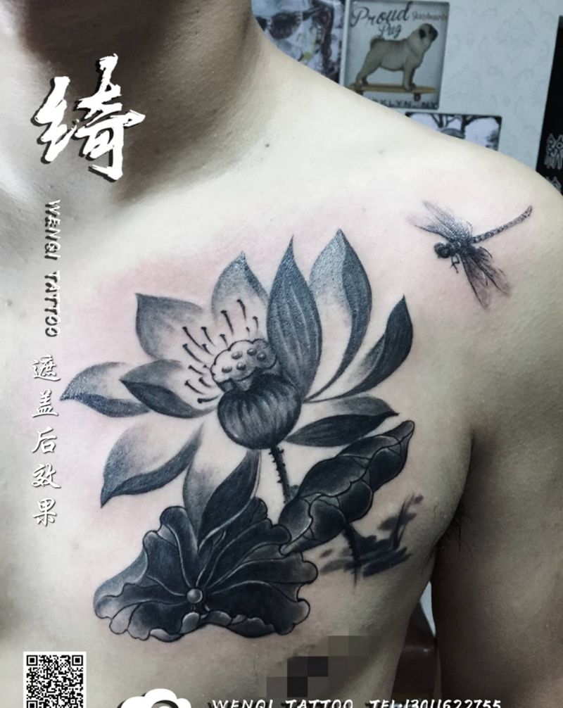 水墨荷花。遮盖作品纹身图片_胸部水墨遮盖纹身图案