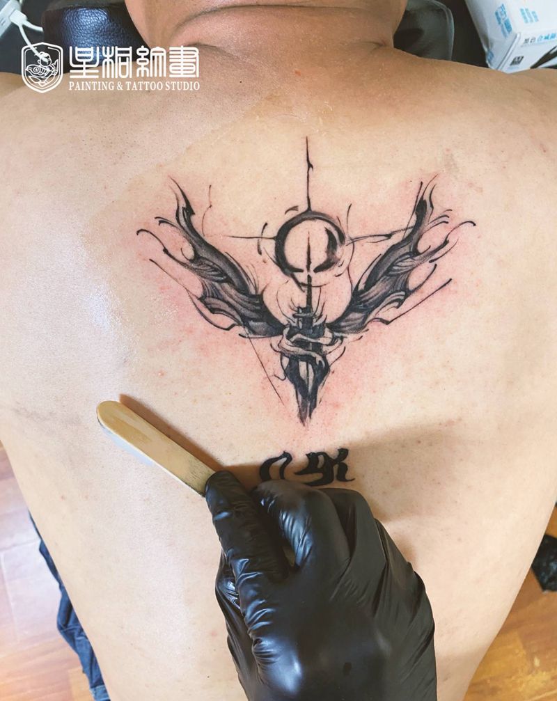 黑灰满背纹身图案