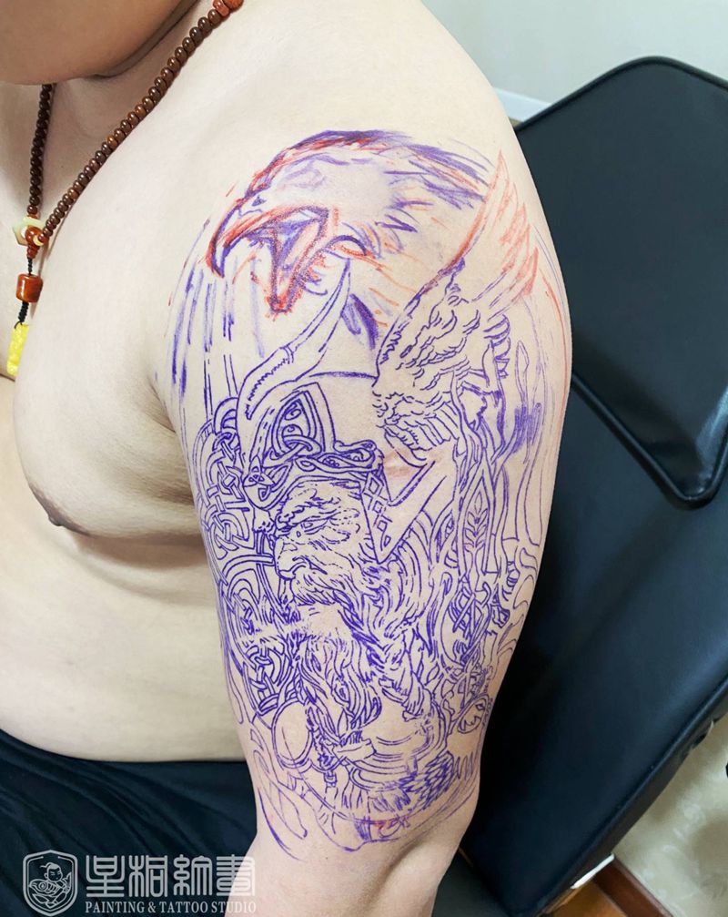 • 纹身吧推荐的披肩图腾半胛纹身图案作品展示