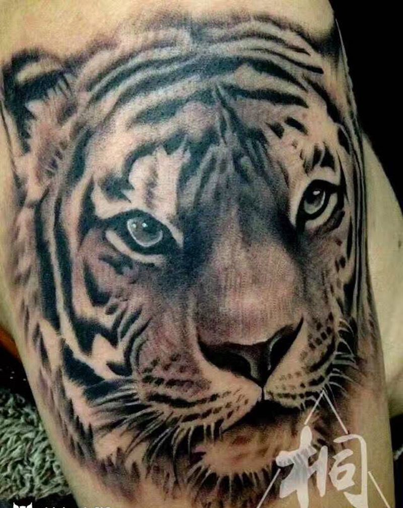 当前位置: 首页 >山东省青岛市纹身店-星桐纹画纹身图案>虎头纹身图片_动物写实手臂成品纹身图案