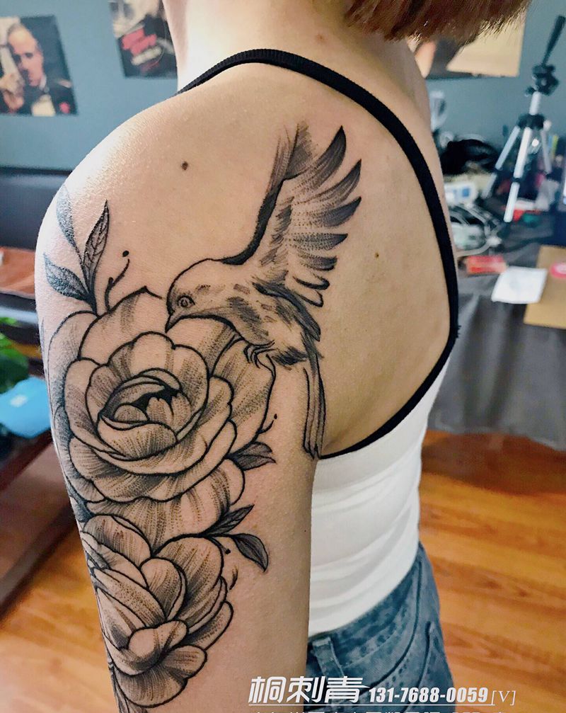 素雅花卉纹身图片_手臂花卉鸟纹身图案