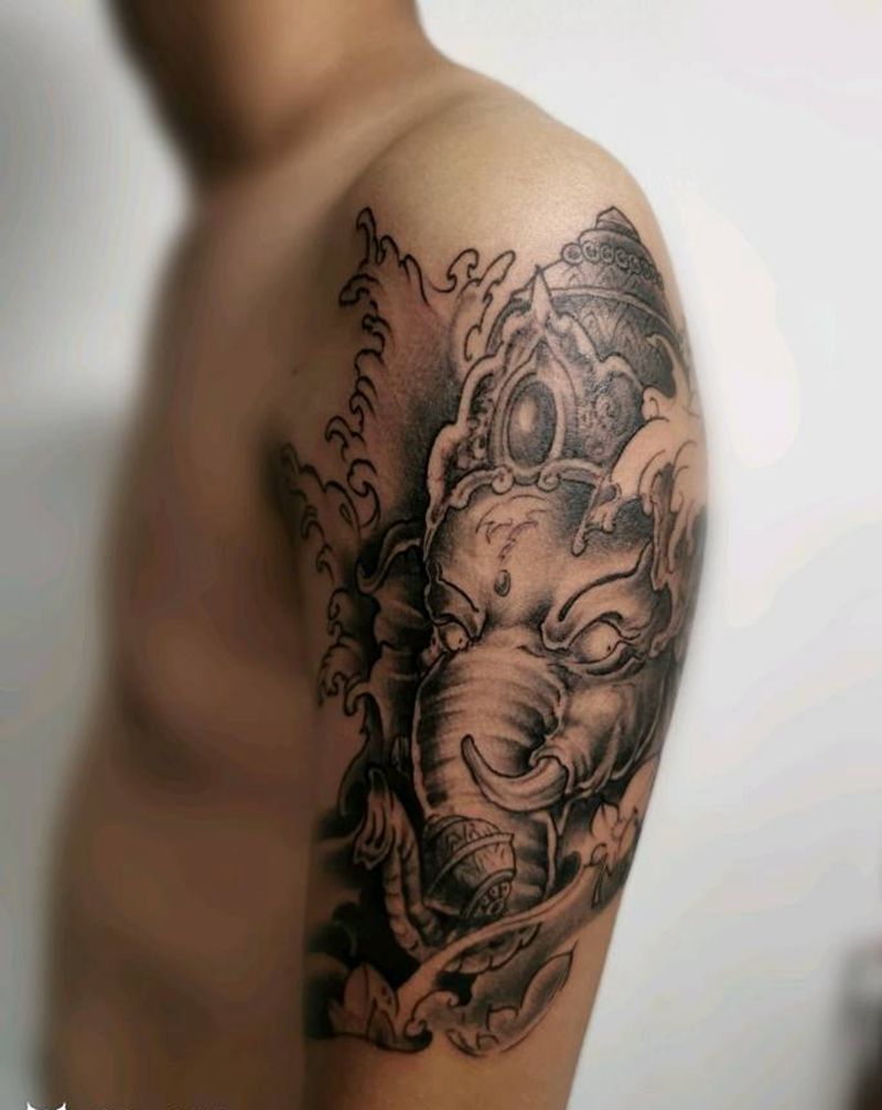 当前位置: 首页 >山东省淄博市纹身店-第一次文身纹身图案>象神大臂纹身图片_手臂纹身图案