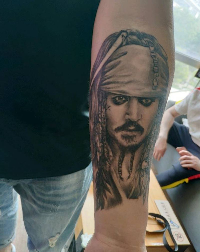 纹身恢复后纹身图片_手臂欧美写实肖像纹身图案
