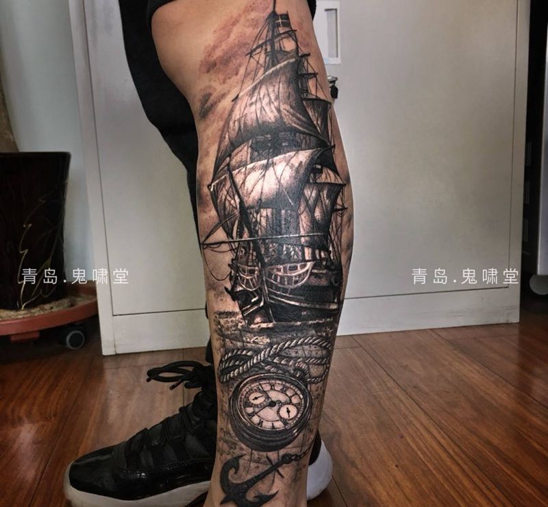 • T网红王老大花腿龙纹身图片_腿部新传统纹身图案