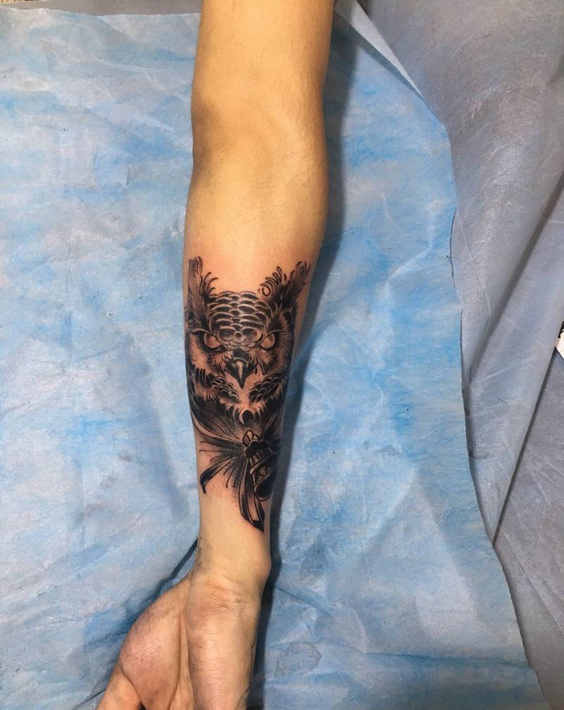 当前位置: 首页 >山东省淄博市纹身店-艺格刺青纹身图案>猫头鹰纹身图片
