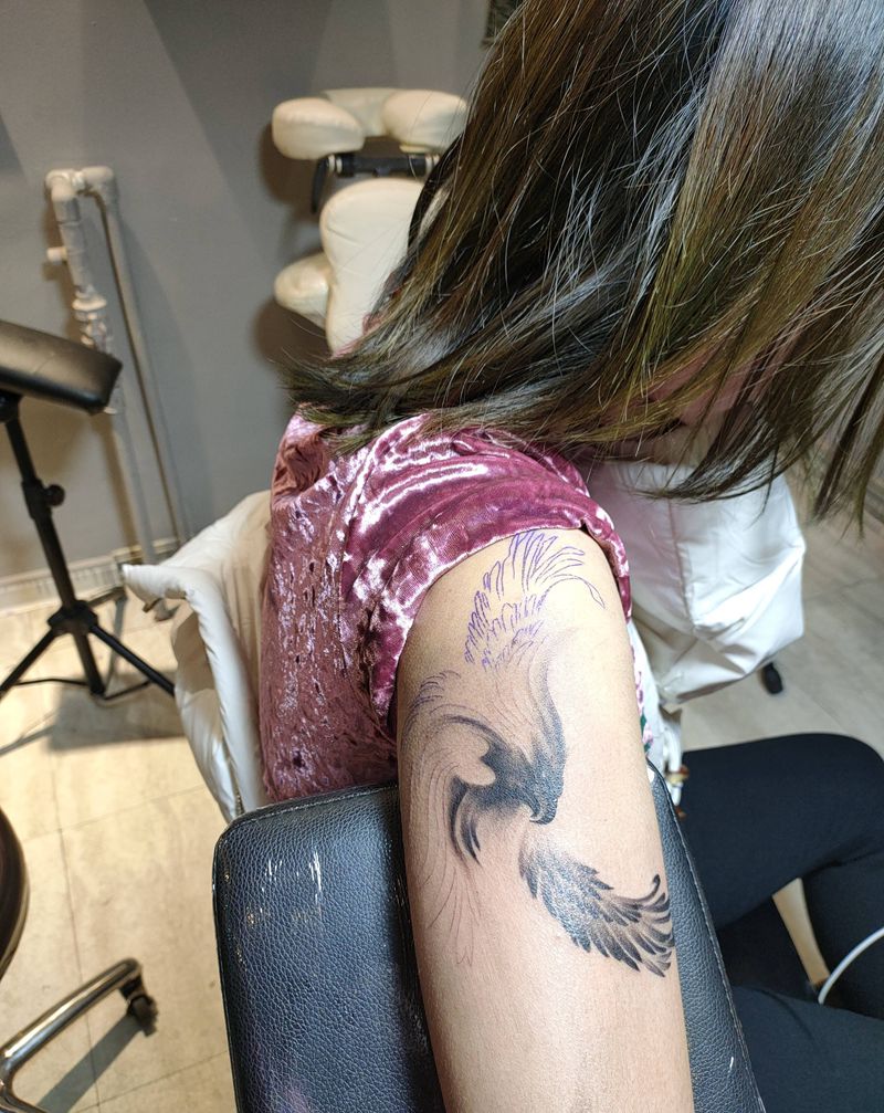 当前位置: 首页 >山东省青岛市纹身店-纹艺复兴纹身机构纹身图案>情侣,鹰纹身图片_手臂纹身图案