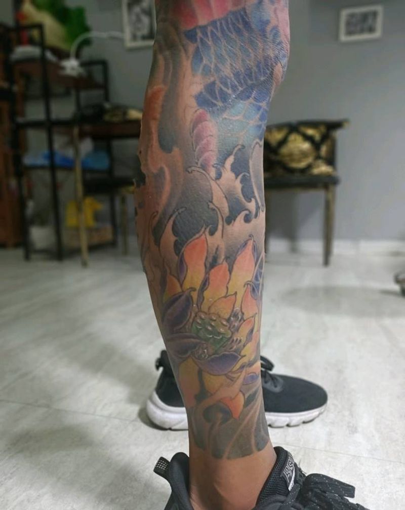 友人花腿作品纹身图片_腿部新传统纹身图案