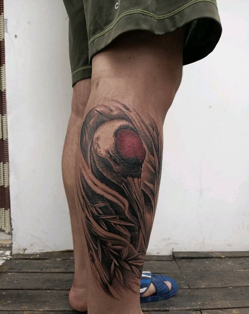 当前位置: 首页 >山东省青岛市纹身店-纹艺复兴纹身机构纹身图案>仙鹤纹身图片_腿部新传统鹤纹身图案