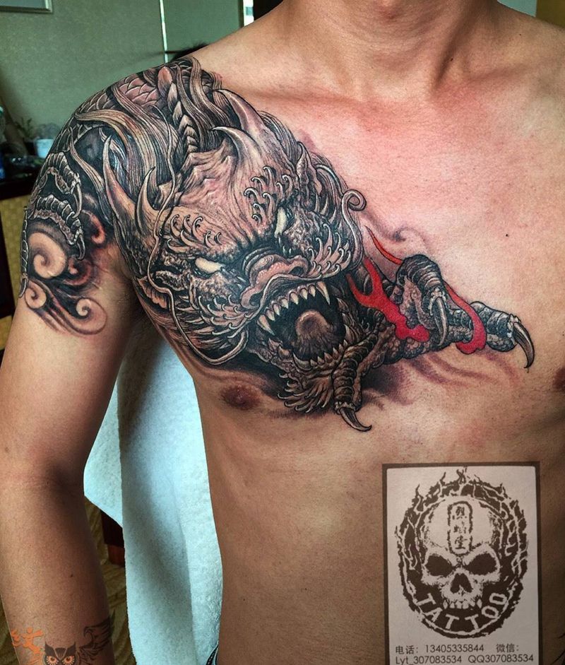 过肩后背龙纹身图片_成品背部胸部肩部手臂传统动物人物鬼神原创纹身图案