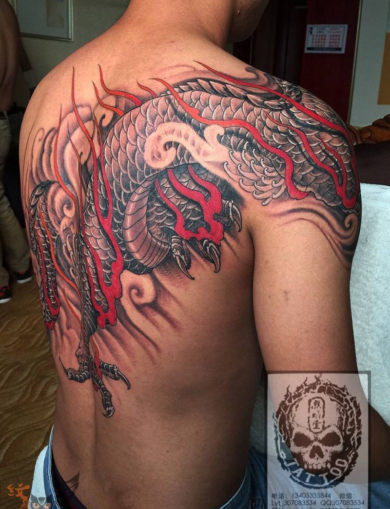 过肩后背龙纹身图片_成品背部胸部肩部手臂传统动物人物鬼神原创纹身图案