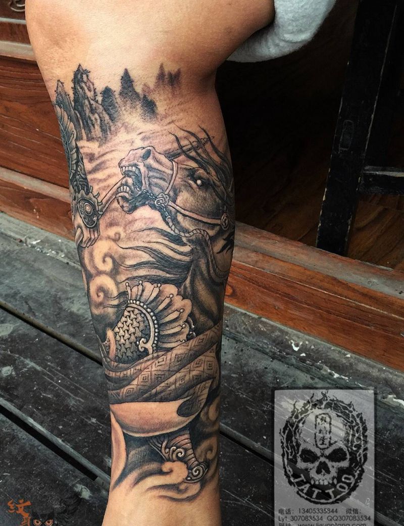 兔将军纹身图片_成品腿部传统动物原创人物宗教鬼神纹身图案