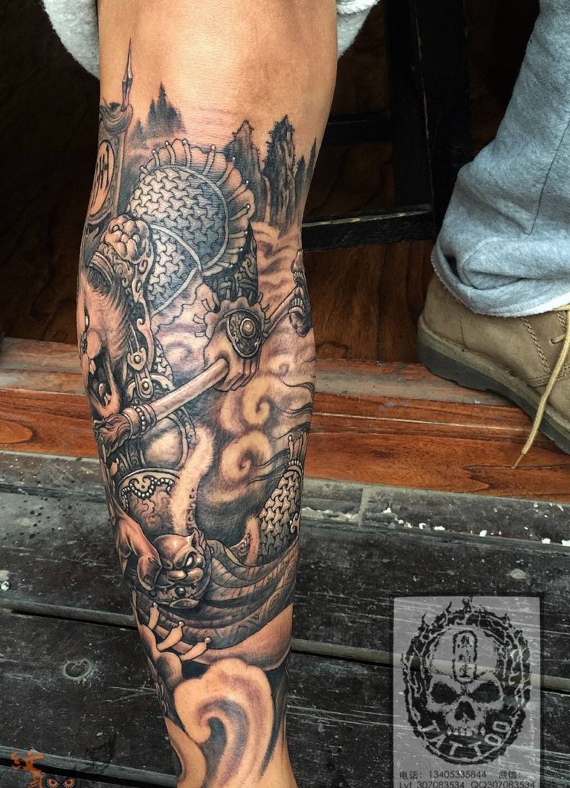 兔将军纹身图片_成品腿部传统动物原创人物宗教鬼神纹身图案
