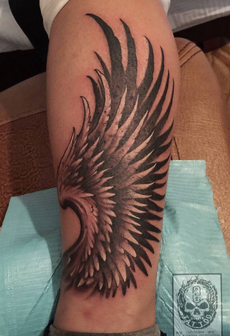 翅膀纹身图片_成品脚部欧美原创纹身图案