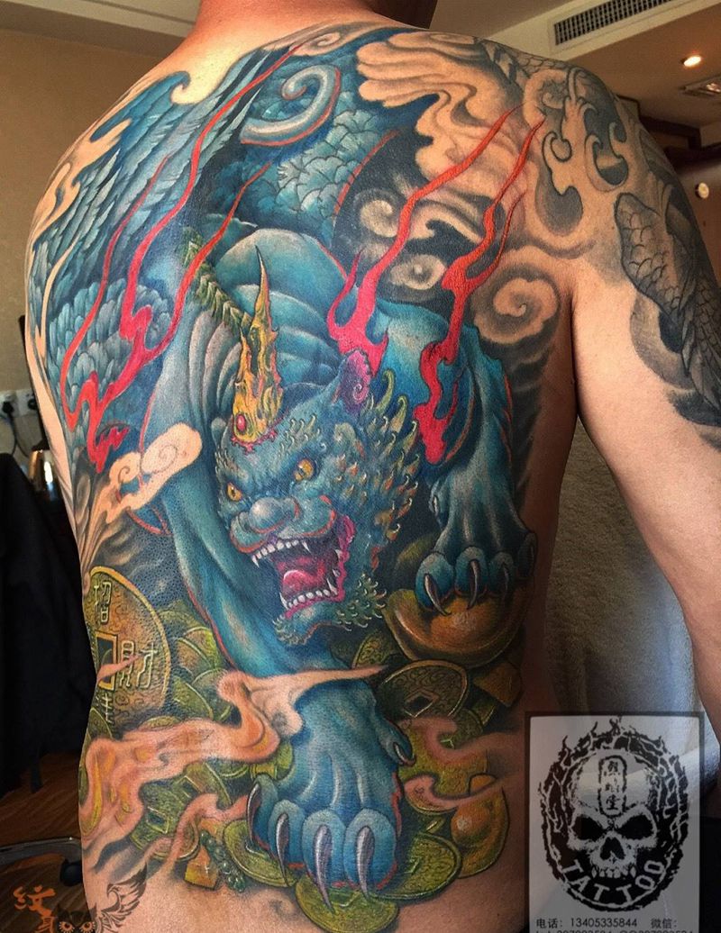 当前位置: 首页 >山东省淄博市纹身店-烈焰堂纹身纹身图案>招财貔貅纹身图片_成品背部传统写实欧美动物鬼神宗教人物原创纹身图案