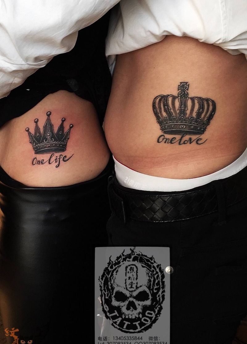 当前位置: 首页 >山东省淄博市纹身店-烈焰堂纹身纹身图案>情侣皇冠纹身图片_成品腰部清新欧美写实图腾几何情侣原创纹身图案