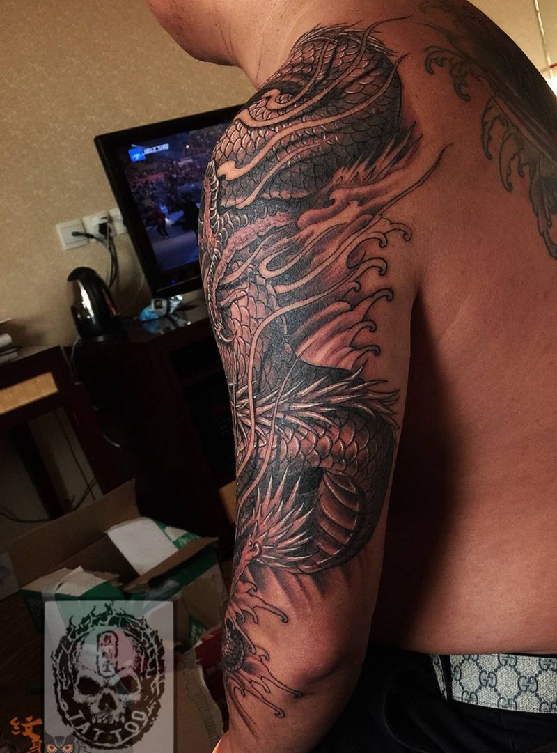 过肩龙纹身图片_成品肩部胸部手臂欧美传统鬼神原创动物写实纹身图案