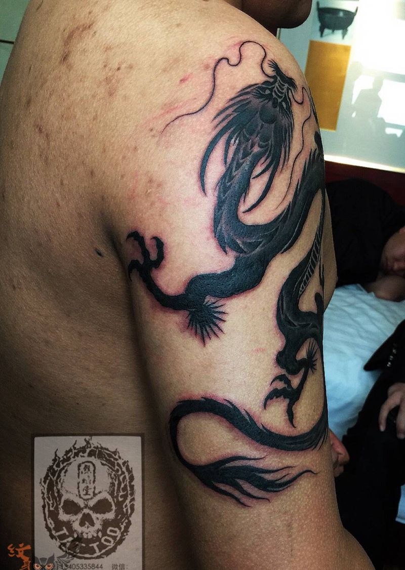 当前位置: 首页 >山东省淄博市纹身店-烈焰堂纹身纹身图案>图腾龙纹身图片_成品肩部手臂传统图腾原创动物纹身图案