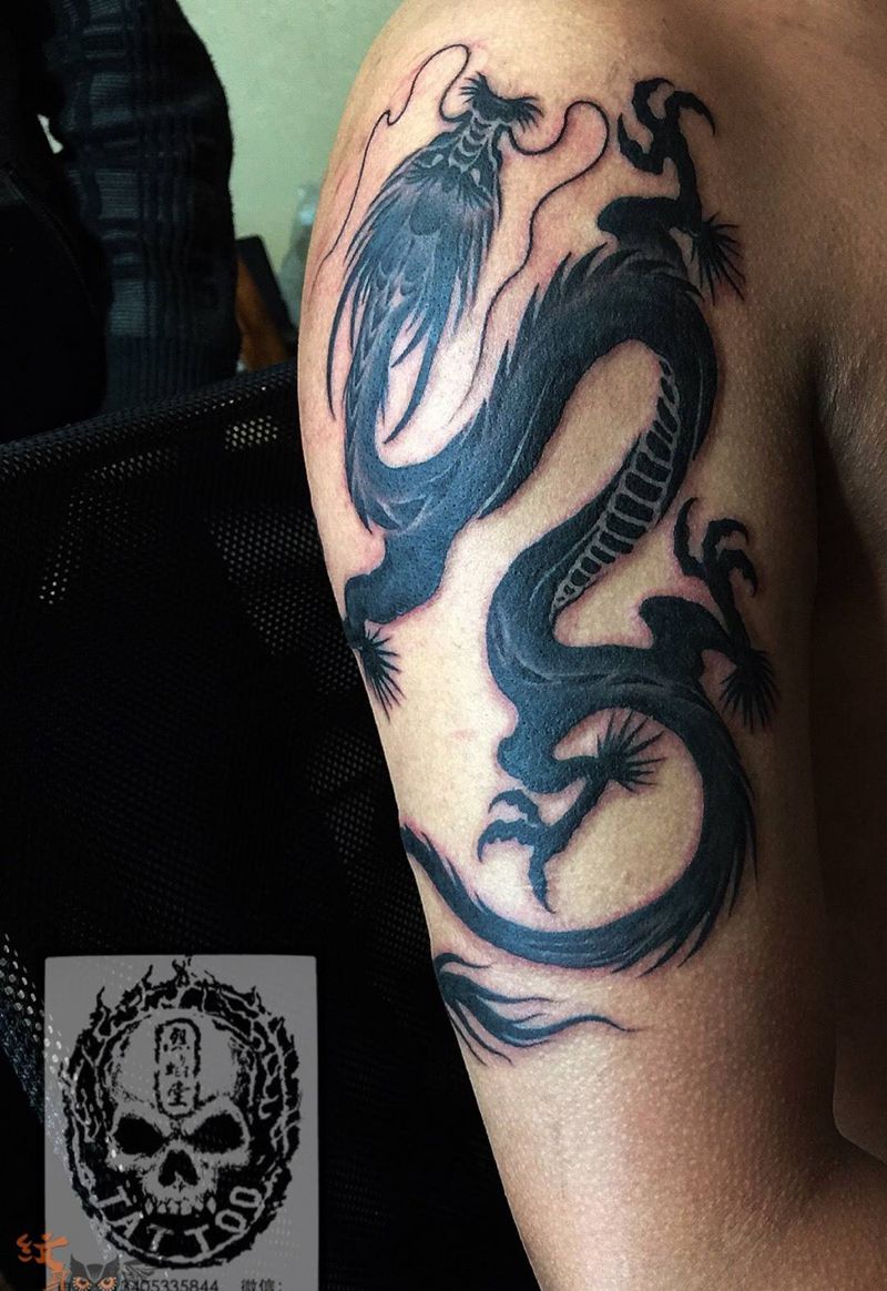 图腾龙纹身图片_成品肩部手臂传统图腾原创动物纹身图案