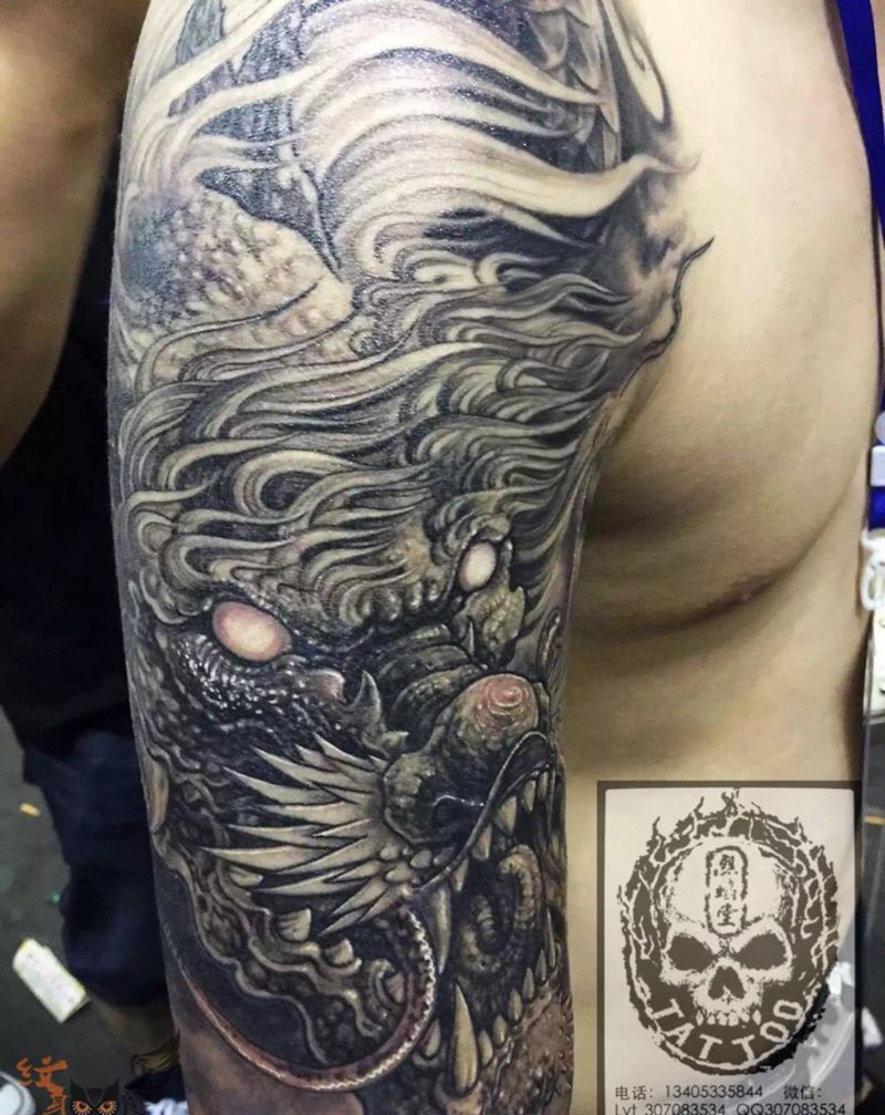 水淹陈塘关纹身图片_手臂肩部传统原创动物宗教纹身图案