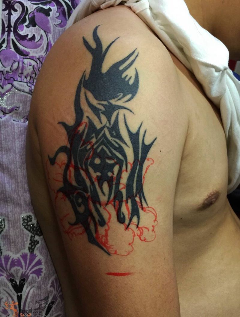 • 纹身吧推荐的披肩图腾半胛纹身图案作品展示