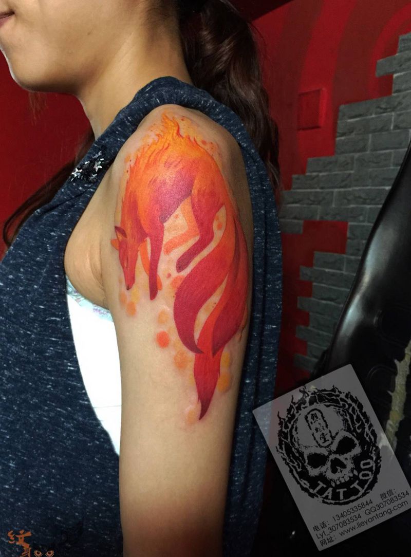 当前位置: 首页 >山东省淄博市纹身店-烈焰堂纹身纹身图案>燃纹身图片_成品肩部欧美清新动物原创神兽纹身图案